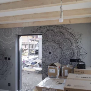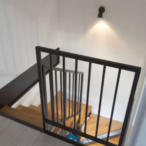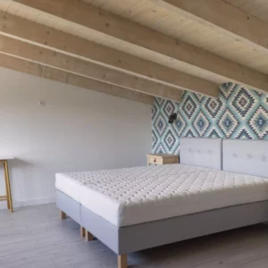 Sypialnie na piętrze prezentują się coraz bardziej przytulnie. Solidna i stylowa konstrukcja schodów zapewnia bezpieczeństwo. Podłogi, sufity i ściany nabrały charakteru. Montowane jest także stylowe oświetlenie.