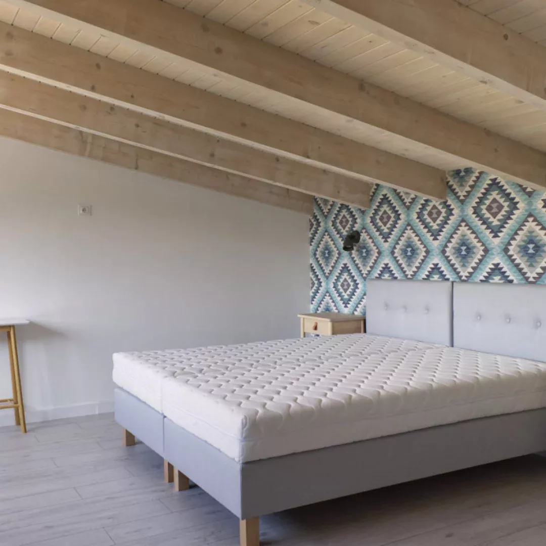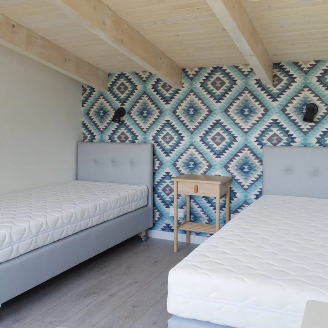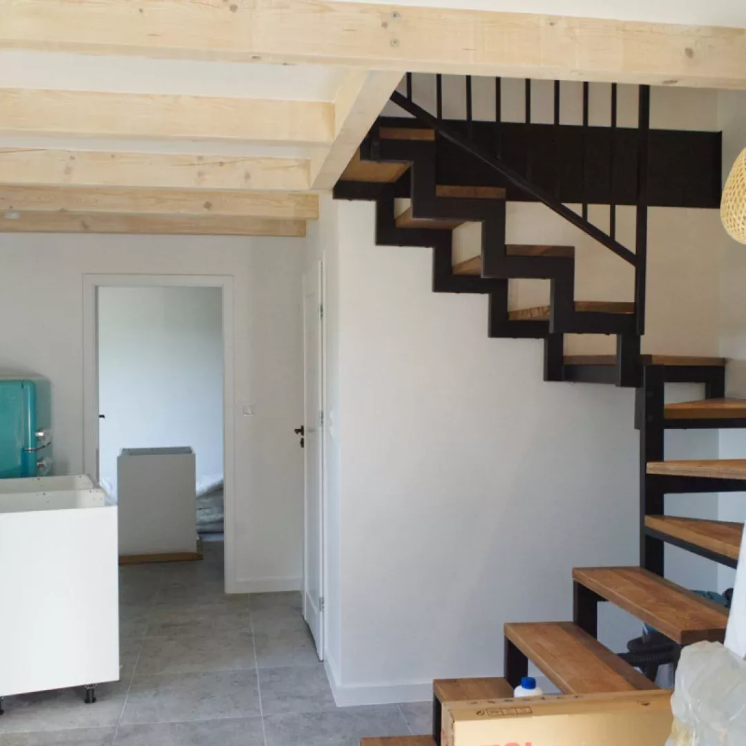 Sypialnie na piętrze prezentują się coraz bardziej przytulnie. Solidna i stylowa konstrukcja schodów zapewnia bezpieczeństwo. Podłogi, sufity i ściany nabrały charakteru. Montowane jest także stylowe oświetlenie.